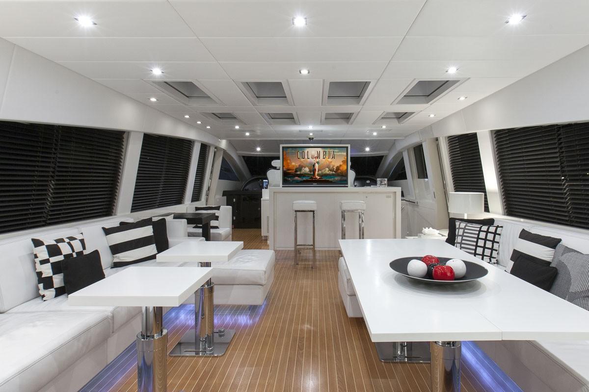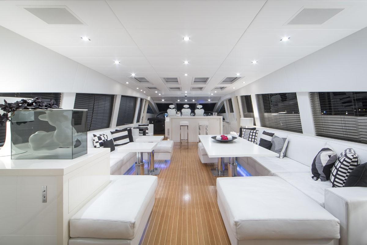 Late model modern design with very contemporary light interiors. Styling, stunning furnishings and comfortable plush seating are featured throughout all her living areas plus expansive sunbathing and entertaining areas both inside and out. This 106 Leopards boasts a watergate propulsion system for shallow Bahamian cruising along with impressive leisure and entertainment facilities making her the ideal yacht charter for socializing and entertaining with family and friends.